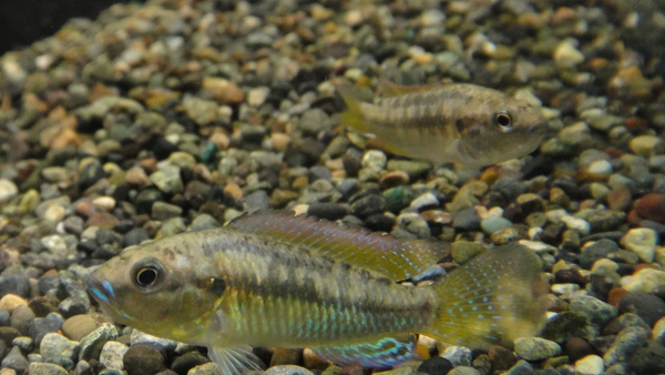 ちょっと小型美魚というか、なんかドワーフシクリッド的な感じで、あんまりうちの店っぽくない魚ですね。マウスブリーディングをする魚としてはあまりにも有名な魚の仲間で、Pseudcrenilabrus属の中では最大種です。それでもオスで10cm程ですからあまり大きくありませんが・・・。小さくてキレイな魚というイメージですが、その特徴的な繁殖形態から変わった魚という感じもするので、何となく仕入れてみました。繁殖は難しくありませんので口いっぱいに稚魚をくわえて子育てをする姿を観察してみてください!