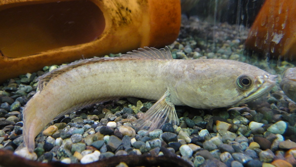 なんでしょう??こいつは正体不明のドワーフです。なんか妙に色が白いんです。突然変異とか色彩変異とかではないようですが、なんか変わった印象を受ける魚ですね。スネークヘッドマニアの方いかがですか??