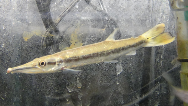 来ました!ビクーダ Boulengerella cuvieri です。ハイドロシナスガー属最大種で野生では1mを超える、タライロンやアルマータスカショーロと並ぶ超大型カラシンの1種です。かなり久々の入荷で、当店の入荷はたぶん1年半~2年ぶりくらいの気がします。もともとが入荷の少ない希少な魚ですのでマニアの方はお早めに!もちろん1匹のみです。
