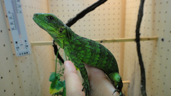 人気のバナスパが入荷です!小さいうちは鮮やかな黄緑色ですが、成体はとってもキレイな黄色いトゲオイグアナになります!そしてなにより性格がすごく大人しいんです!よく馴れるトゲオイグアナですから超オススメ!同じバナナスパイニーテールイグアナの名前で入荷する、黄色くならないクシトゲオイグアナがいますが、今回入荷のバナスパはちゃんと黄色くなる本物のイエローファントムです!