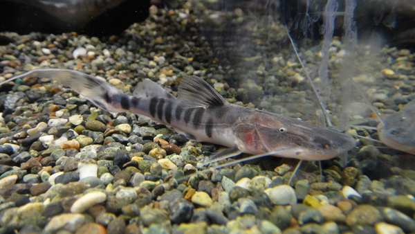 ダイチャです。模様が細かくて派手な個体です。もともと、黒底の水槽に入ってたのでスポットが茶色っぽくなっていますが、白底の水槽やクリアの底でベアタンクの水槽で飼育すればスポットの色もクリーム色になってくると思います。そうすればかなりキレイな個体になると思いますよ!!餌はキャットでOKです!