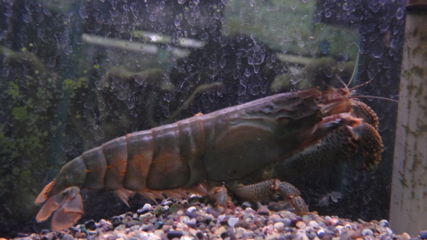 でかっ!!青くてかっこいいです!こんな厳つい見た目からは想像できないような大人しいエビなんです!小型魚との混泳も可能です!