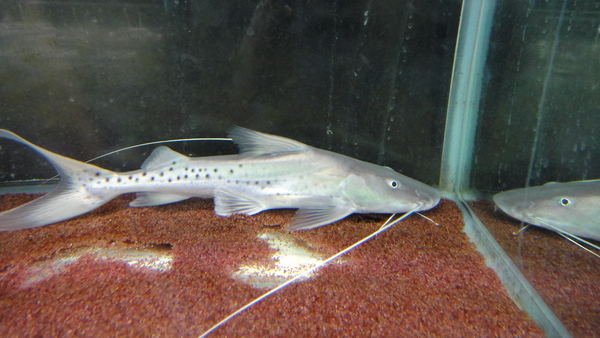 最近ブラジルのピライーバは滅多に輸入されません。入ってくるのはペルー産のレオパードピライーバだけです。以前はピライーバとレオパードピライーバは同種であり生息域が違うことによるバリエーションとされていましたが、現在では別種とされ、最大サイズもピライーバの方がはるかに大きく、体型や模様にも違いが見られます。今では高価なナマズですがとてもかっこいい素晴らしいナマズです!上段の画像です。