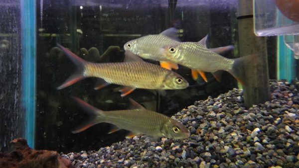 これもアクアライフ5月号の新着魚のコーナーに「プンティウス ジェードニィ」として載ってます。そこそこの大きさ(40cm位)なるらしいです!レッドフィンバルブをスレンダーにしたような体型で、腹ビレ、臀ビレは鮮やかな蛍光オレンジ色です。