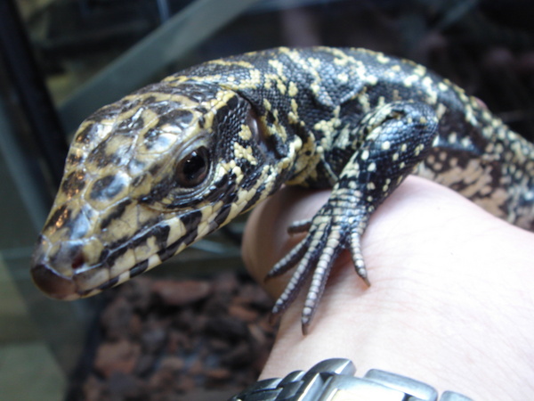 キタテグーの方です。一般にミナミテグーに比べて馴れにくいと言われてますが今回入荷の個体はベタなれです。