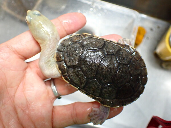これも小型でキレイで飼い易いオススメのハコヨコクビガメ。ちょっと大きめの安心サイズで人工飼料にも餌付いてます。