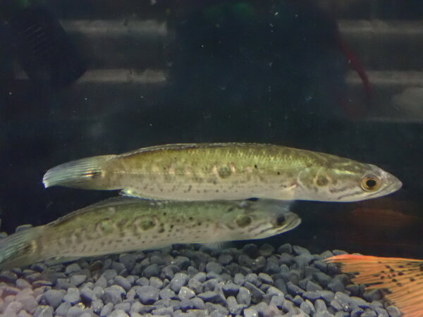 チャンナブルマニカのインボイスで入荷しました。腹ビレの無い細身の体型でたぶんブルマニカで合ってると思いますが、これ系のスネークヘッドはまだ未記載の種類が多いらしく問屋さんの担当者もブルマニカで来てるけど絶対っていう約束はできないからね、ってことでしたのでその辺はご了承下さい・・・。まぁブルマニカなんて滅多に輸入されないんで過去に入荷した個体と実物を並べて比較してみるっていうこともなかなかできないですし、仮にそれができたとして違う魚だった場合でもどっちが正解なのかは自分には分かりません・・・。でもこれ系の腹ビレが無いタイプのスネークヘッド自体ががかなりレアですからね、種類とかはもうもはや何でも・・・と言った感じではないでしょうか。今回問屋さんにも数匹しか輸入されなかったそうで当店に入荷したのは1匹のみです。気になる方はお早めに!右上の画像です。
