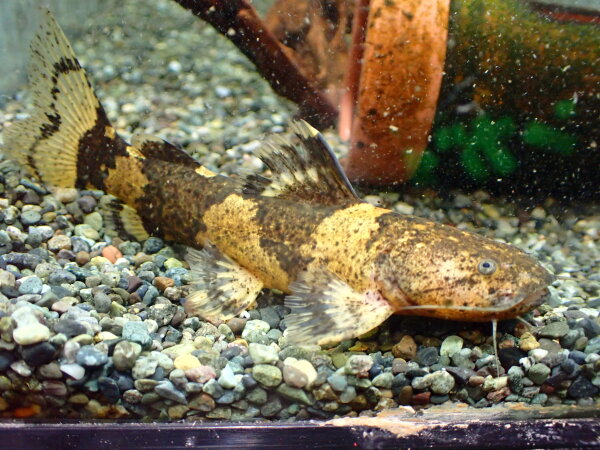 小さめのチャカチャカ来ました。チャカバンカネンシスよりもチャカチャカの方が全然飼い易いです!平べったくて奇怪な顔が特徴のマニアに人気のナマズです。餌は生き餌が基本ですが、うちのお客さんで何匹も人工飼料に餌付けた方がいましたのでチャレンジする価値はありますね!