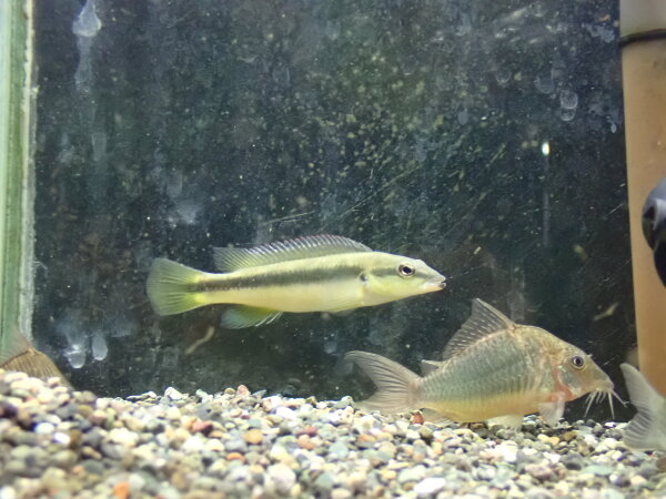 希少な南方系のパイクシクリッドです。最大でも25cm位の中型種で、成熟するとヒレや体側が赤く発色するとてもキレイな種類。太くがっしりした体型も特徴で、ずんぐりした丸っこいシルエットがかわいいです。滅多に入荷しない希少な魚で本当はもっと高価なんですが、今回1匹だけですが安く仕入れることができたので大特価です!激安につき早い者勝ち!左上の画像です。