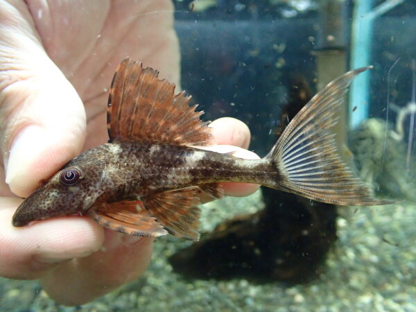別名タバコフィッシュ。口が上向きに付いていて、餌を食べる時はひっくり返って小さな口を高速で出し入れしながら餌を食べたりする変な魚。餌食べる所は見てると面白いです。成魚は発情期に体側にまぁまぁごついトゲが生えてきて発情期が過ぎるとトゲはぽろぽろと落ちます。そういうなんかいろいろ面白くて不思議な生態の魚です。大きいサイズで来ると着状態がイマイチなことが多く環境への順応性も低くけっこう飼育難易度高めなんですが小さいのから育てれば飼育は難しくありません。砂にもぐったり流木の隙間に無理やり入り込もうとしたりする魚なので目が白く擦れたようになってることが多いですが、これはもうこの魚の宿命みたいなものなので悪しからず・・・。
