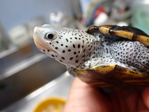 2つの画像は同一個体です。甲羅の模様もキレイですが頭の模様もすごくキレイです!
