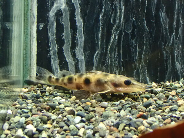 個人的にはシルルスの中でも一番キレイな種類ではないかと思っているのがイワトコナマズ。シルエットは薄い頭部で大型になるビワコオオナマズの方がカッコいいと思いますが、キレイさでは濃い金色と黒褐色の雲状班がバキバキに発色したイワトコナマズの方が上だと思います。30cm位の個体が入荷するとそういうキレイな発色が見られるんですが、最近イワトコの大きめって全然入荷しないんですよね・・・、なので小さいのから育ててみてください!