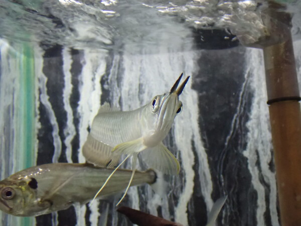 少し前に入荷したアラグアイア産の青いシルバーアロワナのうちの1匹ですが、斜め泳ぎしているので半額にします。斜め泳ぎのため目垂れもありますが普通に泳ぐようになればば目垂れも治るかもしれません。広い水槽で混泳させたり回りを全部囲った水槽で飼ったりすれば治ることもありますので、目垂れ気にしない方や治りそうな環境で飼育できる方にはかなりお買い得だと思います。どなたかチャレンジャーな方からのご注文お待ちしております。中段右、左下の画像です。2つの画像は同一個体です。