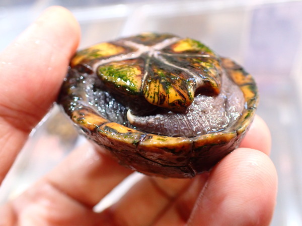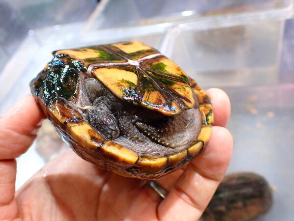 前回即売れだったオス確定のカブトニオイガメが再入荷しました!アメリカからのCBベビーも今後輸入が激減すると思われますが、来たとしてもアメリカのCBベビーは育ててもみんなメスなんですよね・・・。なのでワイルドが輸入されてた頃と違い今はカブトニオイガメのオスは超希少なんです!甲ズレ、多甲板はありません。とてもキレイな個体です。入荷は1匹のみです。オスをお探しだった方はお早めに!!