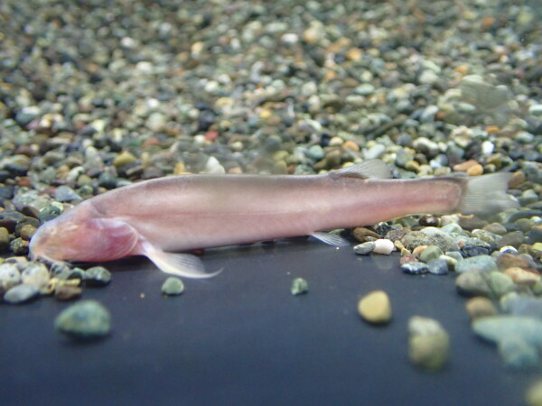 これ初めて見ました!気持ち悪くてすごく良いです!目の退化した洞窟棲のドジョウですが薄っぺらい体型でかなりへんてこりんです。洞窟棲だから低温を好むのか?ボルネオ産だから高温でも平気なのか??もう全然謎です。こういう肌の魚は低温にして白点出てもイヤだから飼育環境は悩むところですが、とりあえず普通に飼ってみよう。5匹入荷しましたが、ホームページ載せる前に売れてしまった個体もいて、あと1匹は体曲がったB品だしで、残りは少数です。こういう変態的な魚お好きな方はお見逃しなく!追記:水温27度でイトメあげたらバクバク食べました。どうも飼育は難しくないっぽいですね。中段の画像です。