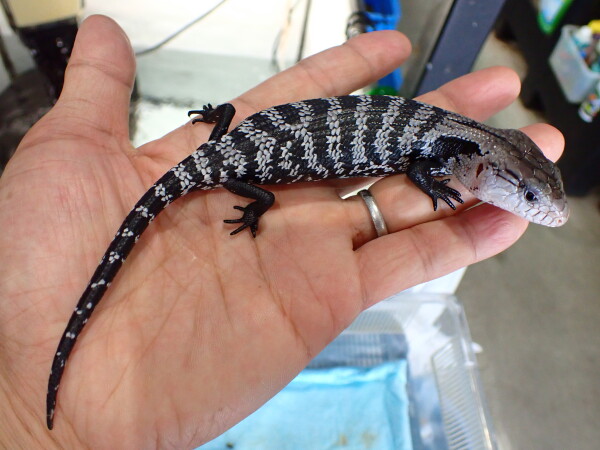 これ大好き!アオジタの中で1番好きかも。白黒のカラーリングが渋くてカッコいいですよね!目も黒目がちだから顔つきの怖いアオジタの中ではだんとつでかわいい顔してますよ!何でも食べて丈夫で飼い易いし、大人しい個体が多いからハンドリングも余裕だし、ペット的に飼うのにもすごく良いですよ!今回は小さくてかわいいベビーサイズでの入荷です!このサイズから育てたら愛着湧きますね!?中段右、下段の画像です。3つの画像は同一個体です。