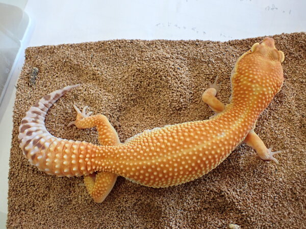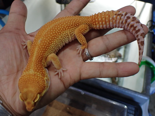ヒョウモントカゲモドキ ”エレクトリックタンジェリントレンパーアルビノ” 中段右、下段の画像