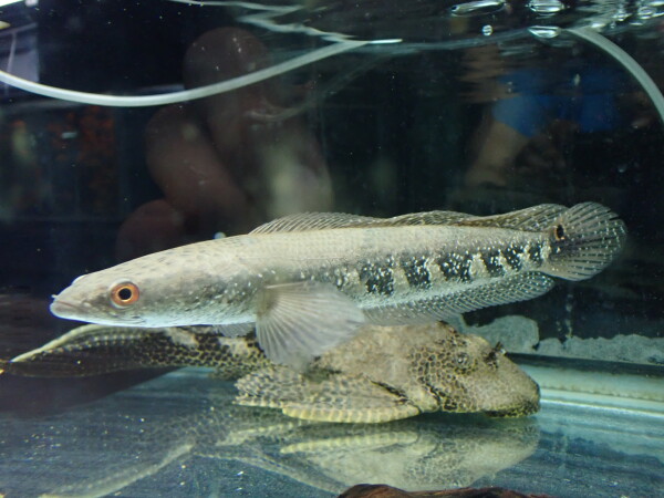 問屋さんに1匹だけ輸入されてたので即ゲット!前回入荷したのが1匹いるので、今回入荷分と合わせて在庫は2匹です。入荷の少ない珍しいスネークヘッドなので気になってる方はいるときに買っておかないと後で後悔するかも!?上段の画像です。左が今回入荷した個体で右が前回入荷した個体です。画像では分かりませんが、今回入荷した個体は臀ビレがバサバサになって傷んでます。ヒレなのでしばらくで治るとは思います。