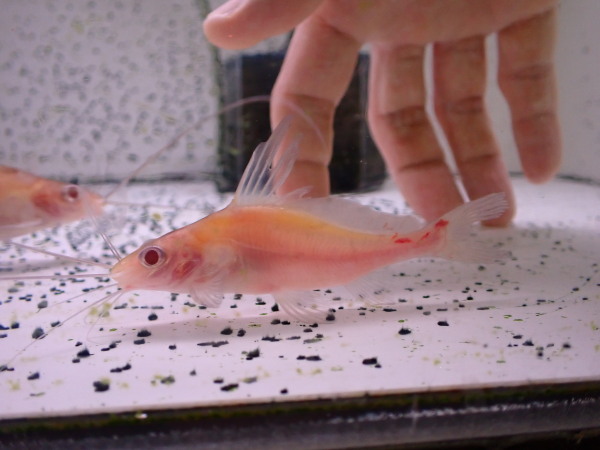 こんなの初めて見ました!ミスタスシンガリンガンはノーマルでも珍しくて入荷少ないですからね、ワイルドのアルビノなんてめちゃくちゃ珍しいですよ!そんな激レアなナマズですが思ったより高くなく、かなりお買い得になってますので特殊個体マニアの方はぜひ!中段左の画像です。