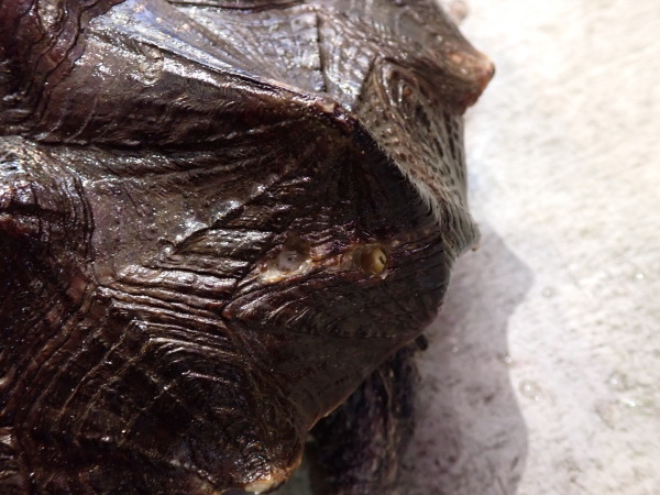 怪獣なマタマタがもう1匹入荷してます。こっちの方がほんの少し小さいんですが、見た感じサイズ差はあまり感じないかも・・・。あとワイルドの大きいカメには結構あるあるなんですが、後ろの方の縁甲板に小さな穴が開いてました。捕まえたカメが逃げないようにここに紐とかワイヤーを通して繋いどくんですよね・・・。甲羅ごつくて厚みがあるし穴も少し斜めに開いてるので上から見たり横から見ただけでは開いてるの分からないです。だからそんなに気にならないと思いますが、ほんのちょっとサイズ小さくて甲羅に穴開いてるということでお買い得になってます。甲ズレや爪欠けはありませんし状態も良好なので、甲羅の穴気にしない方にはこっちの個体がお買い得でオススメです!