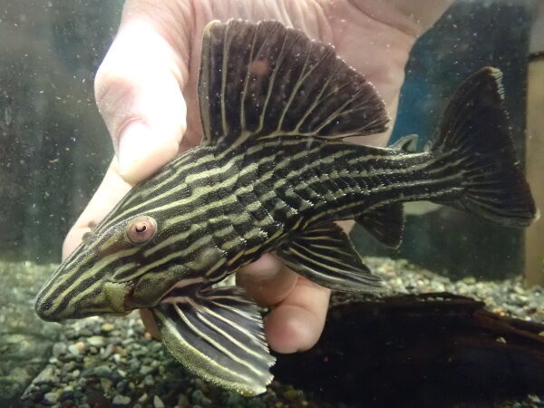 ヒレのエッジが白くなり細かいスポットが入るキレイなブッシープレコ。ブッシープレコの中でも個人的に特に好きな種類なのでオススメです!左下の画像です。