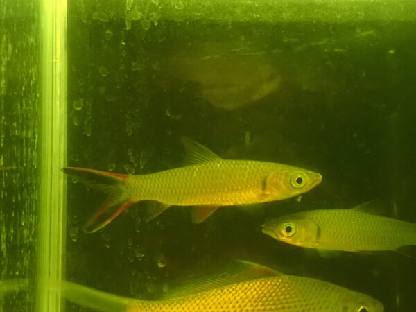これ良い!Leptobarbus melanopterusです。レッドテールジャイアントバルブとかホエベニーシャークって呼ばれてる大型のバルブと同じ属の超珍しい種類。大きくなるとエラ蓋が真っ赤に発色します。まだ小さいのでエラ蓋は発色してませんがヒレの色はすでに濃い赤に発色しています。学名で画像検索してもらえれば発色した個体の画像が出てきますので気になる方は調べてみてください。ホエベニーほど大きくならないので飼い易いと思いますし、成魚の発色は素晴らしいので超オススメ!今回入荷分は全て売れてしまいましたが、問屋に在庫確認中です!もし残ってれば来週再入荷あると思います!左下の画像です。