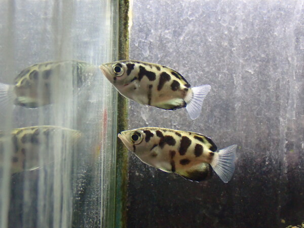 これも純淡水OKです。人工飼料にもすぐ餌付くし、アーチャーフィッシュの仲間の中では大型になる種類とされています。まだら模様がキレイなかっこいいアーチャーフィッシュです!中段右の画像です。
