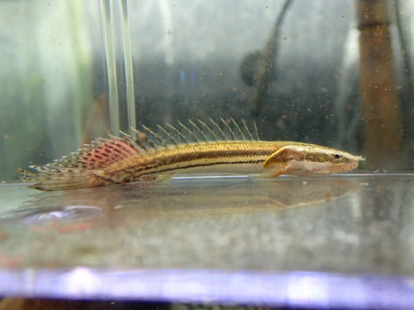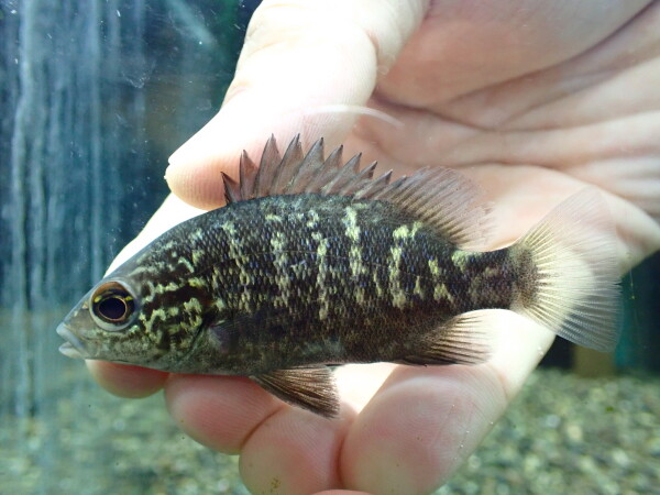 金と黒の体色がキレイでカッコいいナンダスの1種。あまり大きいサイズを見る機会が無い魚ですが、25cmとか30cmになった個体はラグビーボールみたいなパンパンな体型になって超カッコいいですよ!人工飼料にも簡単に餌付くし、純淡水でも問題無く飼えるしで超良い魚ですよ!左下の画像です。