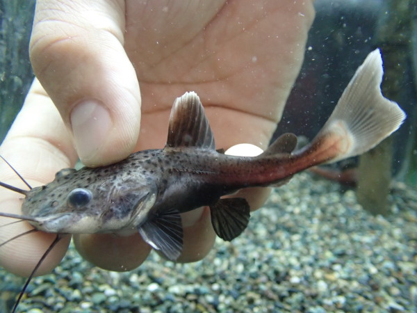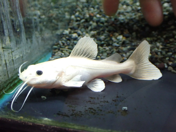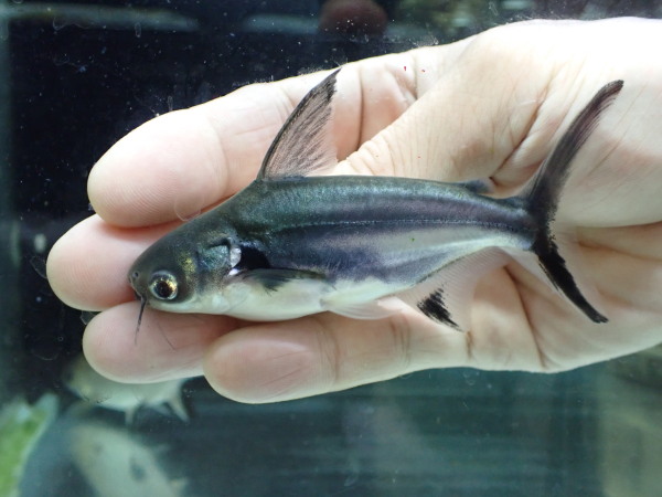 レッドテールキャットのニューカラー!黒いレッドテールキャットが入荷しました。これ不思議な色してます。なんか透明鱗な感じで黒っぽくなってる不思議ミューテーション。鱗の無い魚に透明鱗という表現は適切ではない気がしますが、そんな感じでスケルトンな黒い個体。入荷は少数のみですので早い者勝ち!!色彩変異個体の割に値段安いですが、大きくなる魚なので最後まで飼いきれる方にお願いしますね。衝動買いはダメですよ!ちょっと痩せてますが餌食いは良好なのですぐに太ります。残り1匹になりました。右上の画像です。