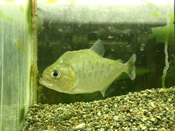 ドイツ便で1匹だけ輸入された激レアピラニアです。来た時ヒレが溶けてたりちょっと痩せてたりしたんでしばらくトリートメントしていましたが、ヒレも再生してきたし、餌食いも良好でがっしりしてきたのでもう大丈夫です!たぶん尾ビレが完全に再生したら15cm以上だと思います。スーパーノッタータスの幼魚の体高を高くして模様をもっと大柄にしたようなキレイなピラニアで、厳つい感じがカッコいいです!かなり希少なピラニアなので今までに国内で流通した量も極わずかだと思います。マニアの方はお見逃しなく!左上の画像です。
