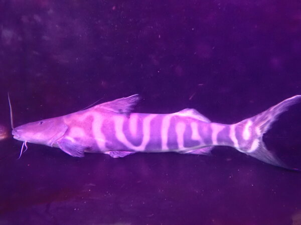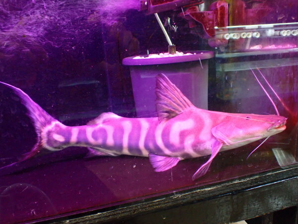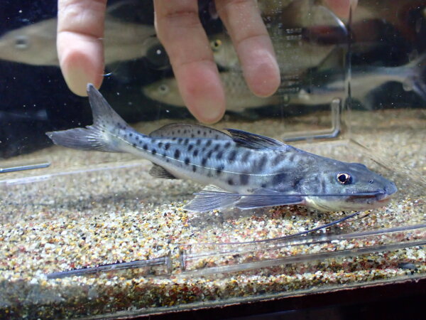 カッコいいし、丈夫で飼い易いし、餌も何でも食べるし、良いナマズですよ。個人的には結構好きなナマズなんですが、餌なんでも食べすぎて他の魚の餌までみんな食べちゃうっていうところが唯一の欠点でしょうか・・・。餌食いの激しい水槽でも負けないタフな魚なんで大型魚の混泳水槽にもオススメ!中段左の画像です。