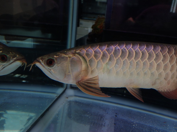 鱗底がキレイな水色に発色した藍底の個体。クリアのベアタンクなのでこの色ですが、黒水槽とかならもっと濃い青になると思います。この青い発色が成長につれてどう変化するかは育ててみないと分かりませんが、現状で鱗框の発色は細く将来は有望だと思います。頭には金の筋が出ているので育て方によってはゴールデンヘッドみたいになるかも?!目垂れ、顎ズレ、エラ捲れなどの欠点はありません。とてもキレイな個体ですしサイズも大きめなのでオススメです!画像は全て同一個体です。