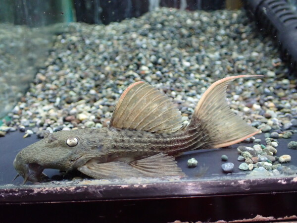 これ大好き!ぱっと見は地味だし値段も安いからなんか大したことなさそうな感じするかもしれませんが、これすごく良いプレコです。大きいサイズでの入荷は滅多になくていつもこういう小さいサイズで来ますが、しっかり育ててあげればちゃんと大きくなります!10cm超えたあたりから超かっこよくなりますよ!