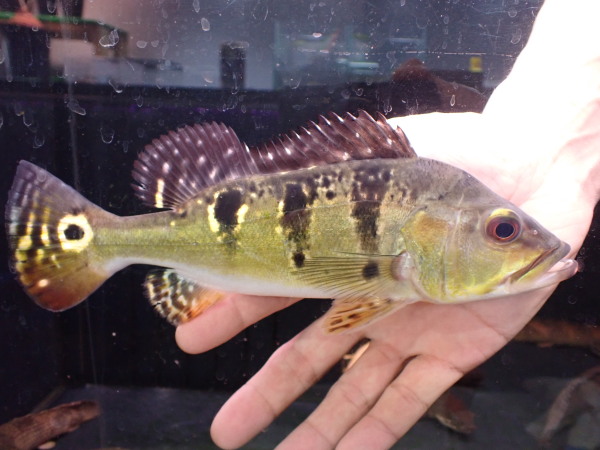 小さいのがたまに輸入されますが、それもごく稀。もう2~3年来てないのでは?そんなスパングルドパーチの大きめサイズが入荷!この魚のこのサイズの個体を見る機会はそうは無いと思います。大きいとカッコいいですね!中段右の画像です。