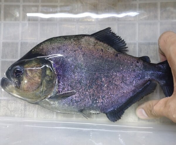 シングー川上流のアウデイア産ブラックピラニアです。これ良いですね!鱗ギラギラ、目は真っ赤で全身超紫!かなりキレイなブラックです。サイズも24cmあるので見応えある良いサイズです!着状態も良好でスレ等のキズも全然ありません!中段の画像です。2つの画像は同一個体です。追記:今回入荷した個体はすぐに売れてしまいましたが、近日中に同じ産地のブラックピラニアがまた入荷する予定です。たぶん少しサイズダウンしますがその分値段も安く販売しますのでお楽しみに。