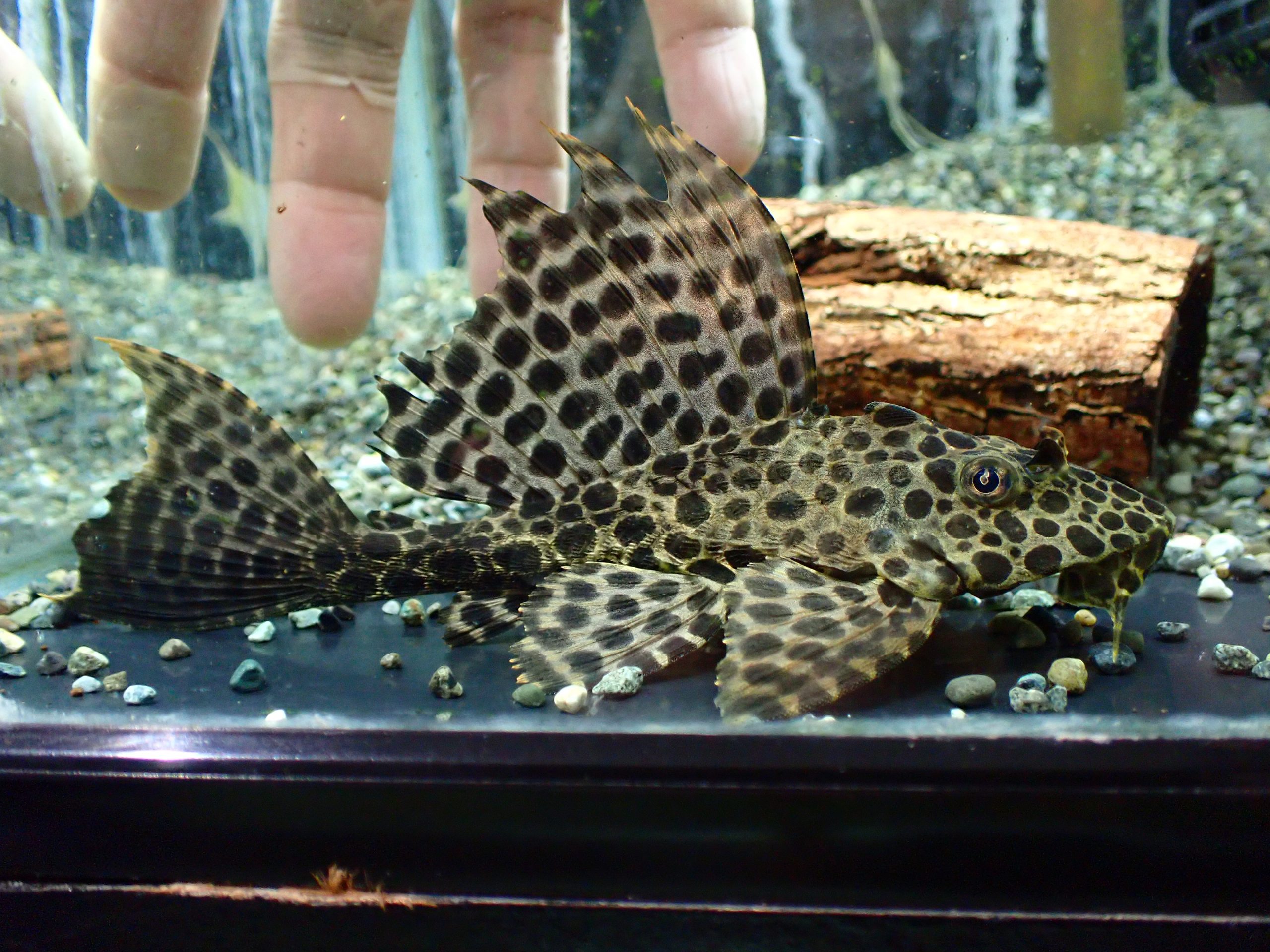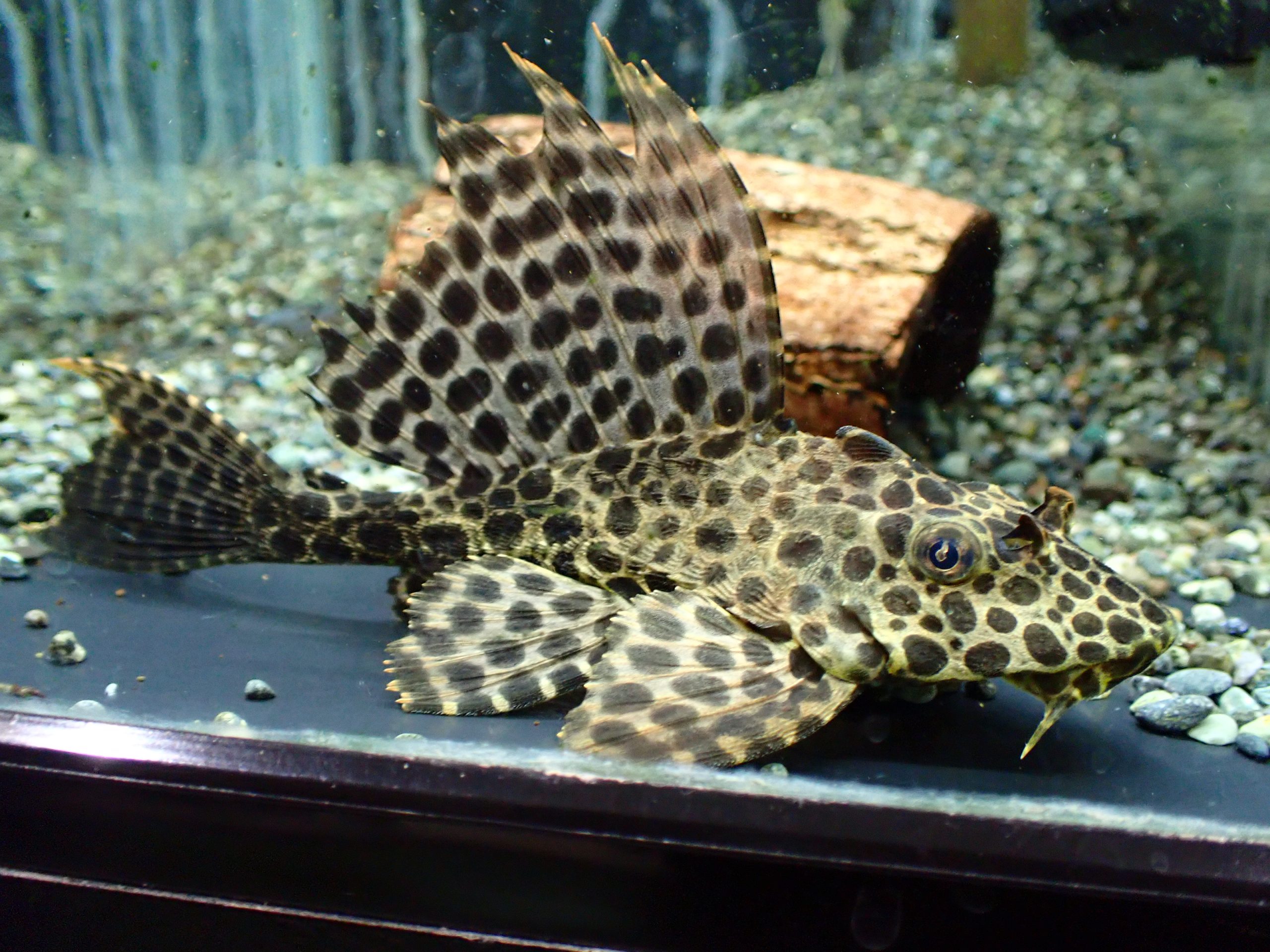 こげ茶色の体色に大きな背ビレがアカリボルダードらしい個体。とてもかっこいいです。コケ取にはもったいないけどもちろんコケもよく食べます。