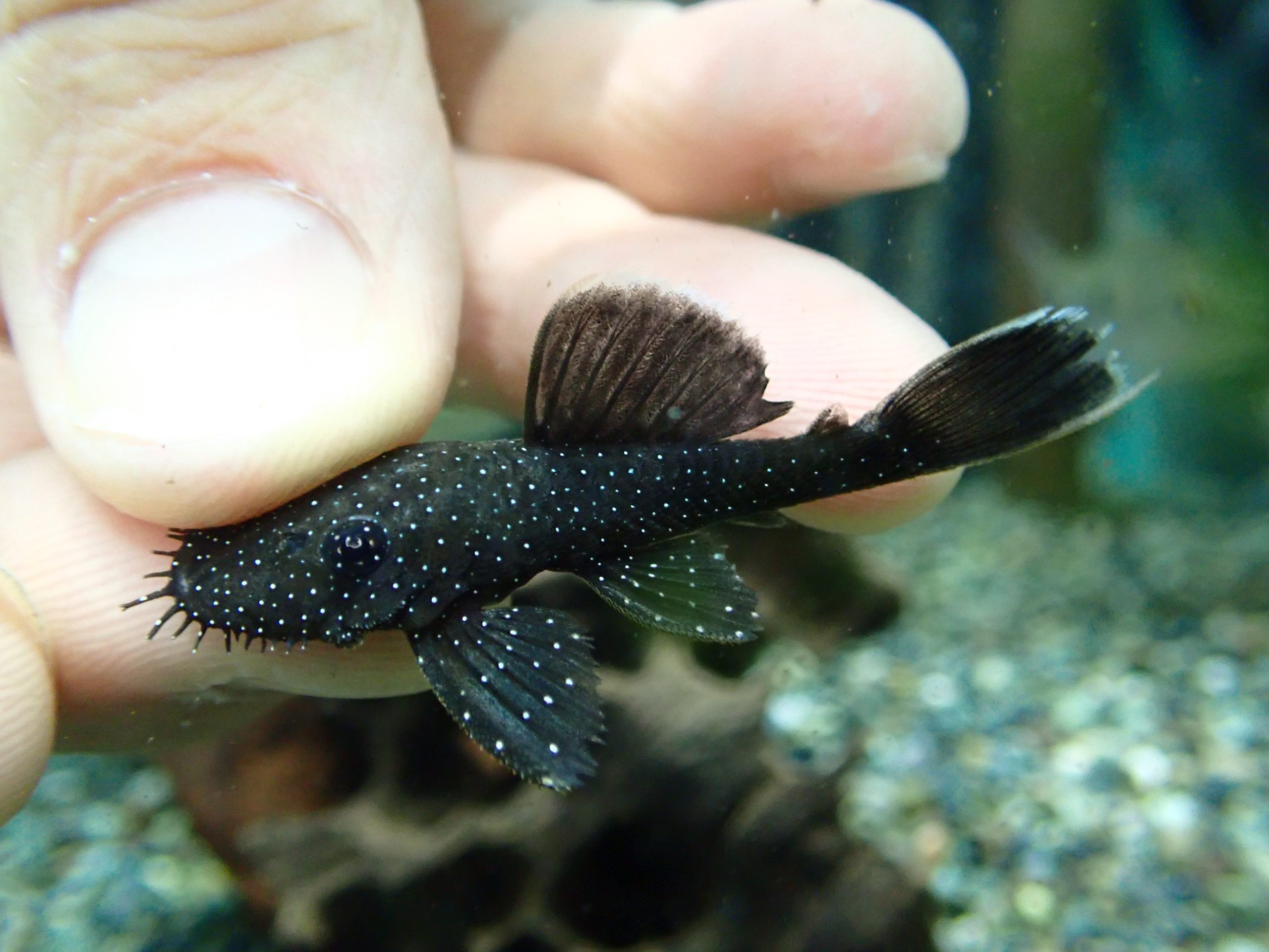 細かいスポットとヒレのエッジが特徴のキレイなブッシープレコ。水槽内での繁殖例もありますのでぜひ何匹かまとめてどうぞ!