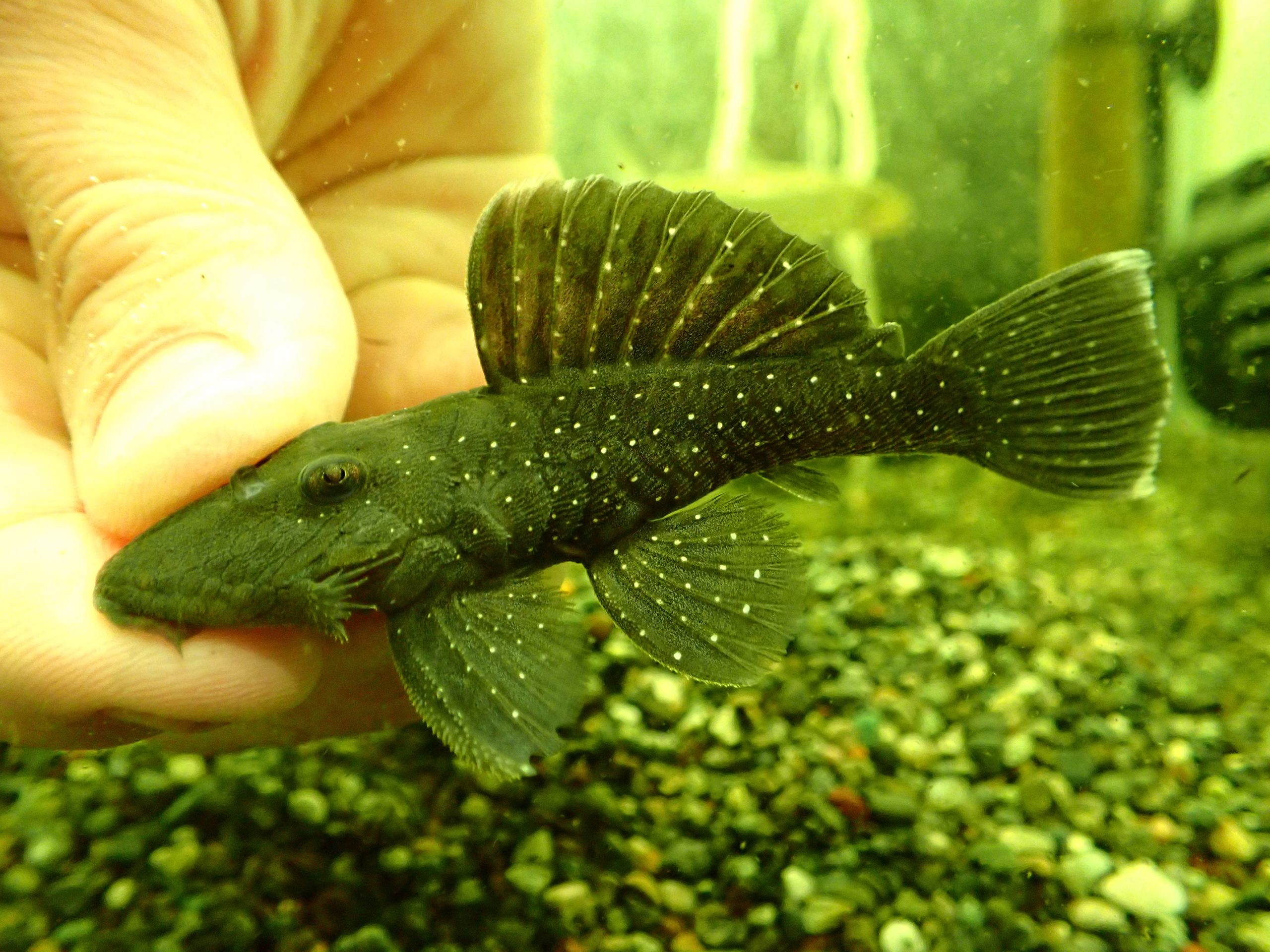 ずんぐりした体型と細かいスポットが特徴のかわいいプレコです。最近はあまり輸入されませんのでいる時にぜひ!