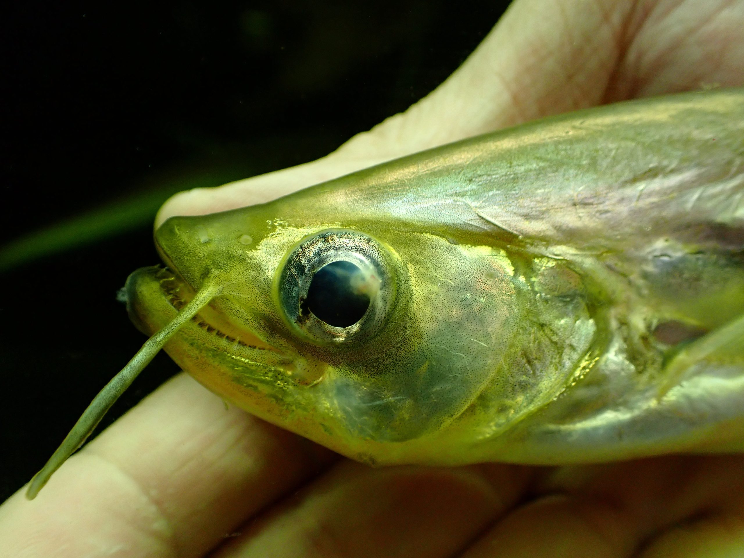 カショーロのような口をしたかっこいいナマズです。片目に少しキズがあります。キレイに治るかは分かりませんので大特価です。