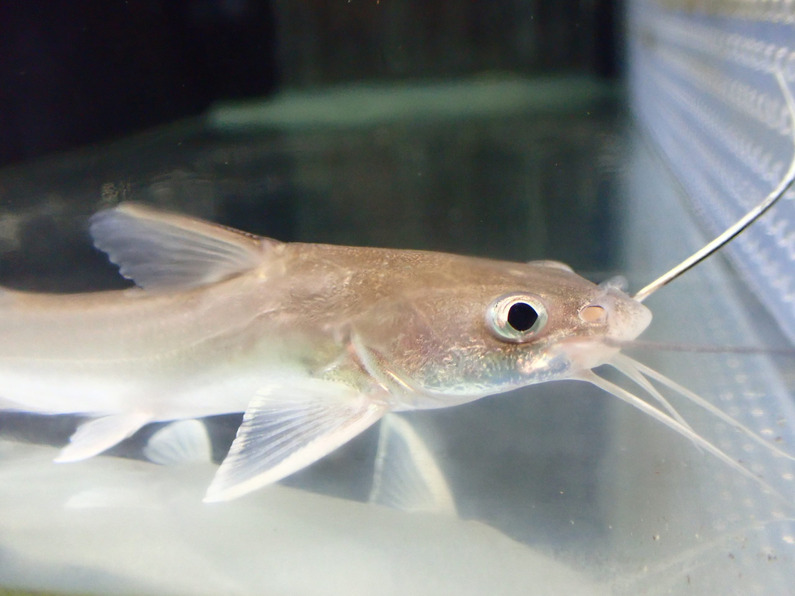 Sciades coumaのインボイスで輸入された謎のシーキャットです。ほとんど情報が無く詳しいことは分かりませんが、成長すると見た目は同属のギルバッカシーキャットの色違いみたいな感じのナマズになるようです。ギルバッカは金色ですがコウマはブロンズっぽいシルバーで、成魚の画像を見ましたが鼻先が尖りぎみでかっこいいナマズです。