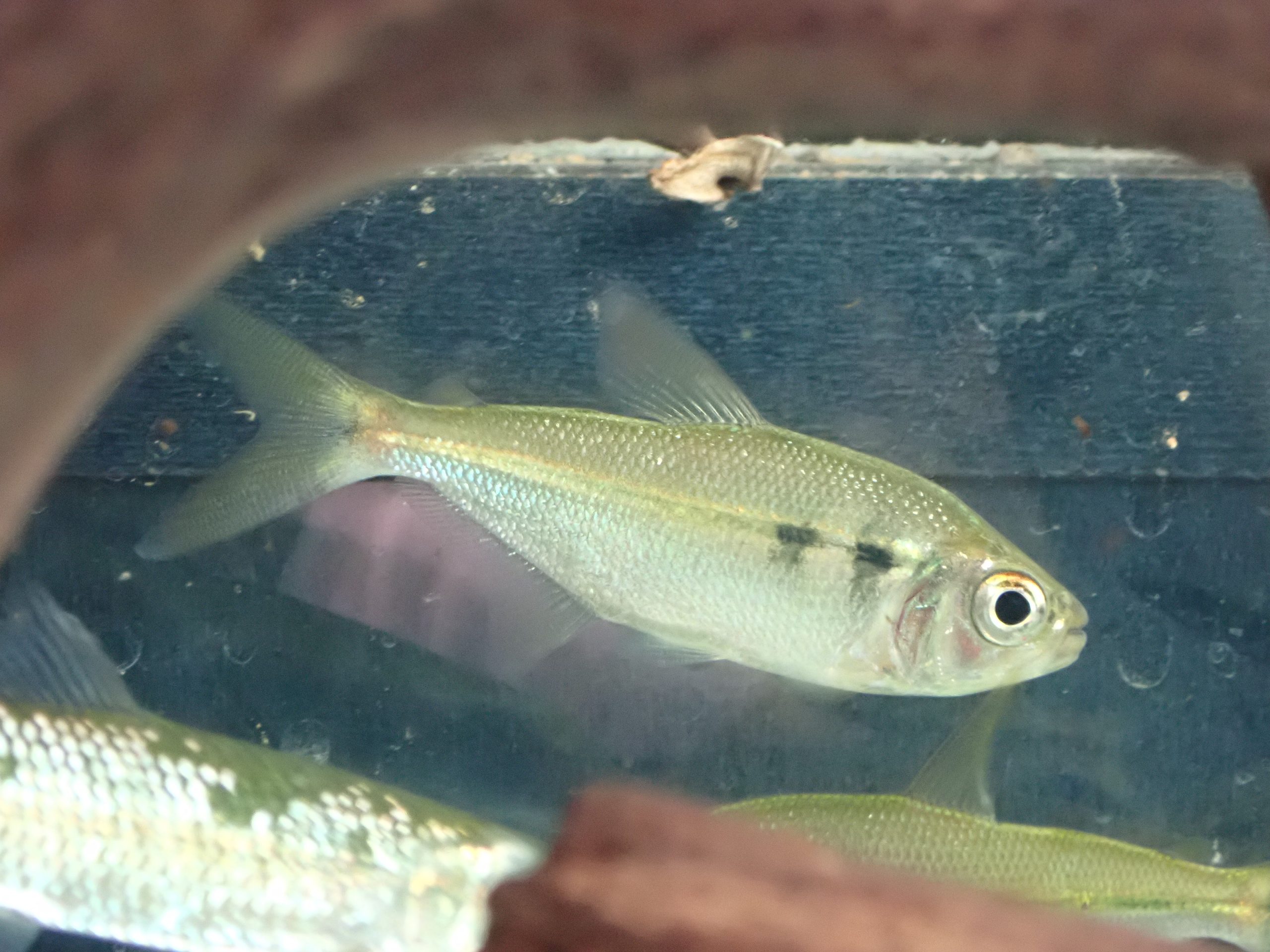 エラ蓋の後ろの2つのスポットが特徴で、落ち着くとお腹が赤く発色するとてもキレイなカラシンです。