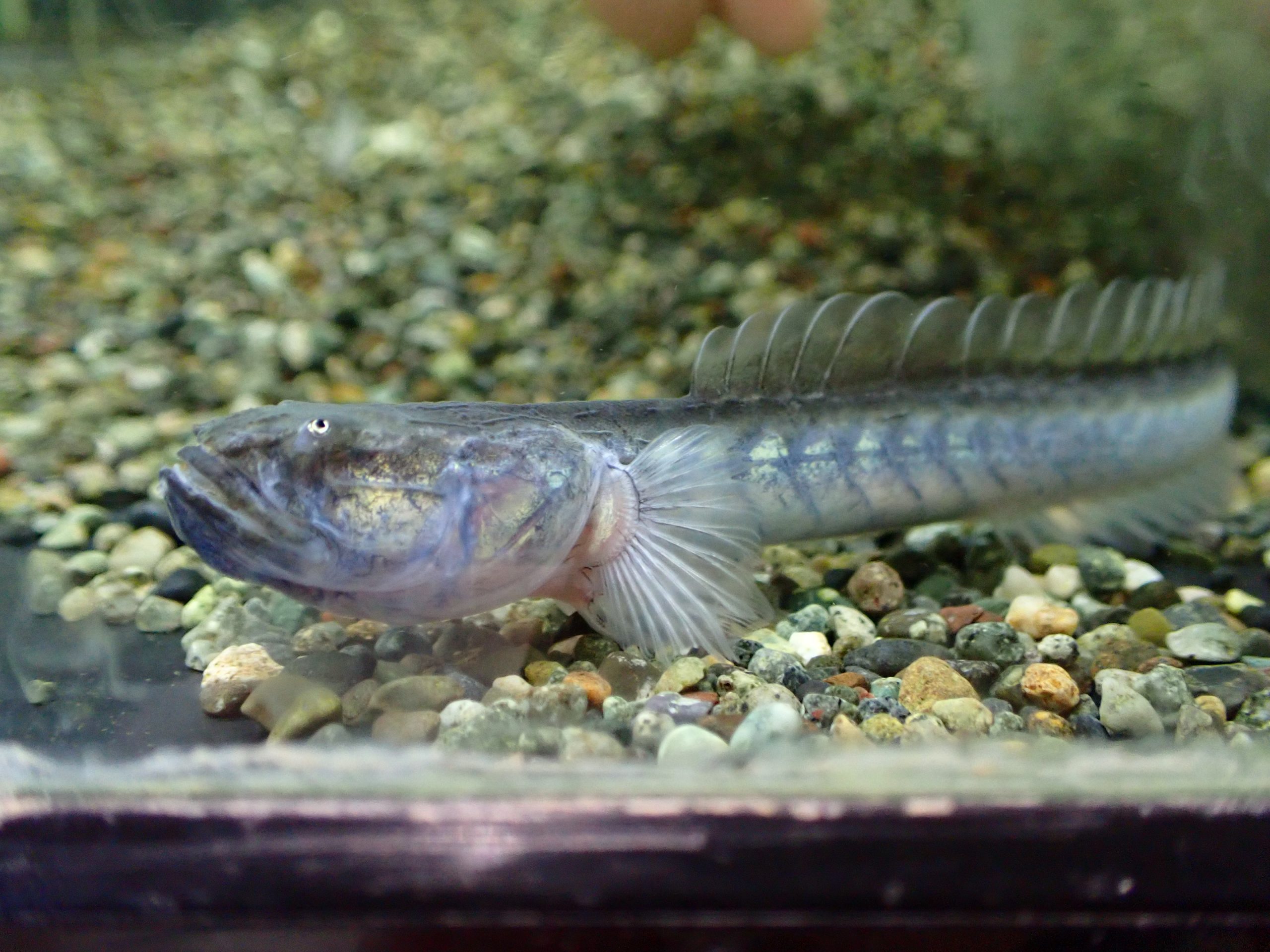 コロンビア産のワラスボの仲間。純淡水でOKですが、今はほんの少しだけ塩入れてあります。着状態が悪いことも多い魚ですが今回は状態良く入荷しています。落ち着くと結構丈夫で沈下性の粒の小さい人工飼料なんかだと意外と簡単に餌付いたりしますよ!