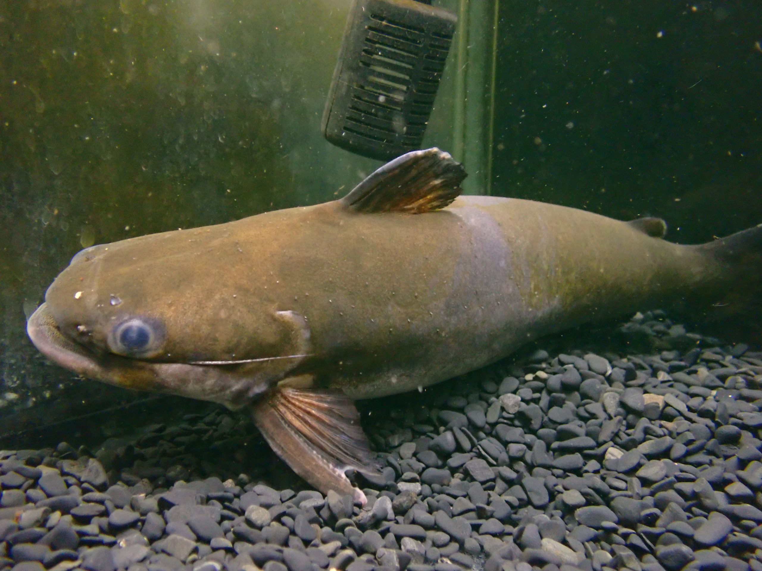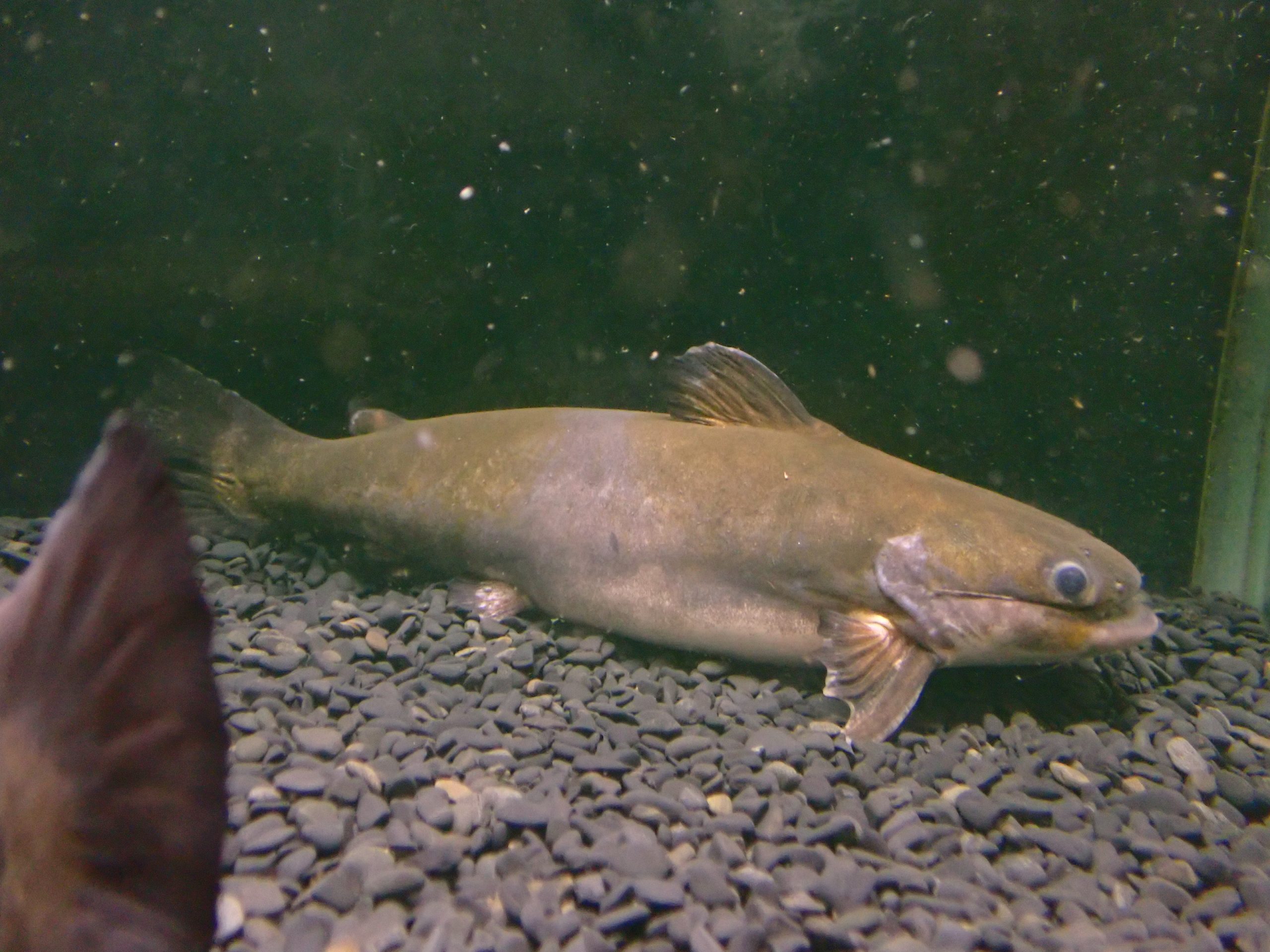 30cm超えの大きな個体です。前から在庫してた個体でお店で大きくなりました。餌食いも良好で人工飼料でもなんでもバクバク食べます。39cmのメスと同じ水槽でストックしていますが、仲良くしてますしたまに寄り添って体をブルブル振るわせたりして繁殖行動のような動きを見せていたのでもしかして卵産んだりしないかなぁ?と思ってストックしていましたが、今のところ産んでません・・・。スーパーマニアなそこのあなた、メガマウスの繁殖狙ってみませんか??ペアでお買い上げの場合はペア特価でちょっと値引きします。ペアご希望の場合はお問い合わせください。3枚目の画像はオスメスでサイズ差が分かるように上から撮影しました。