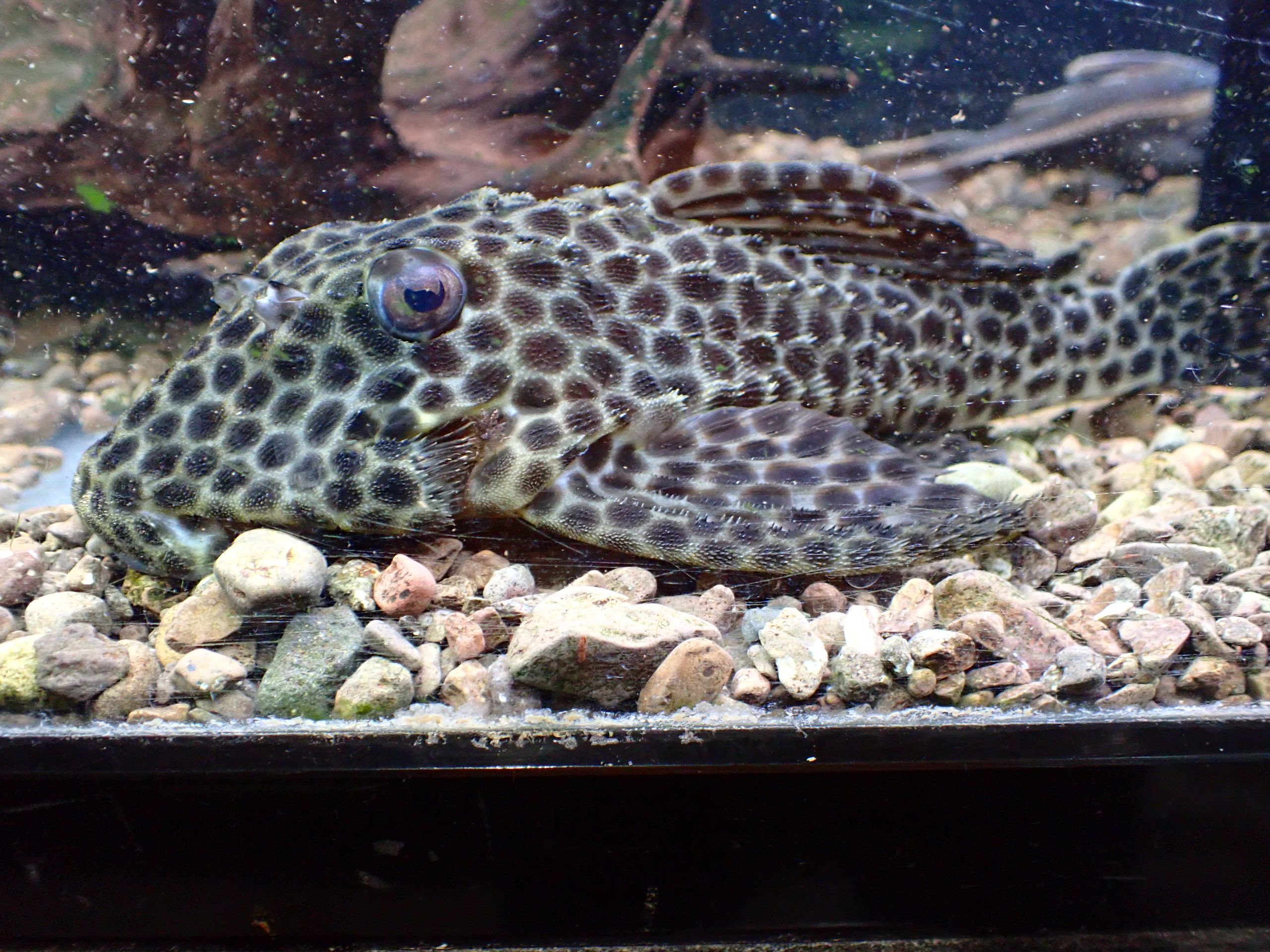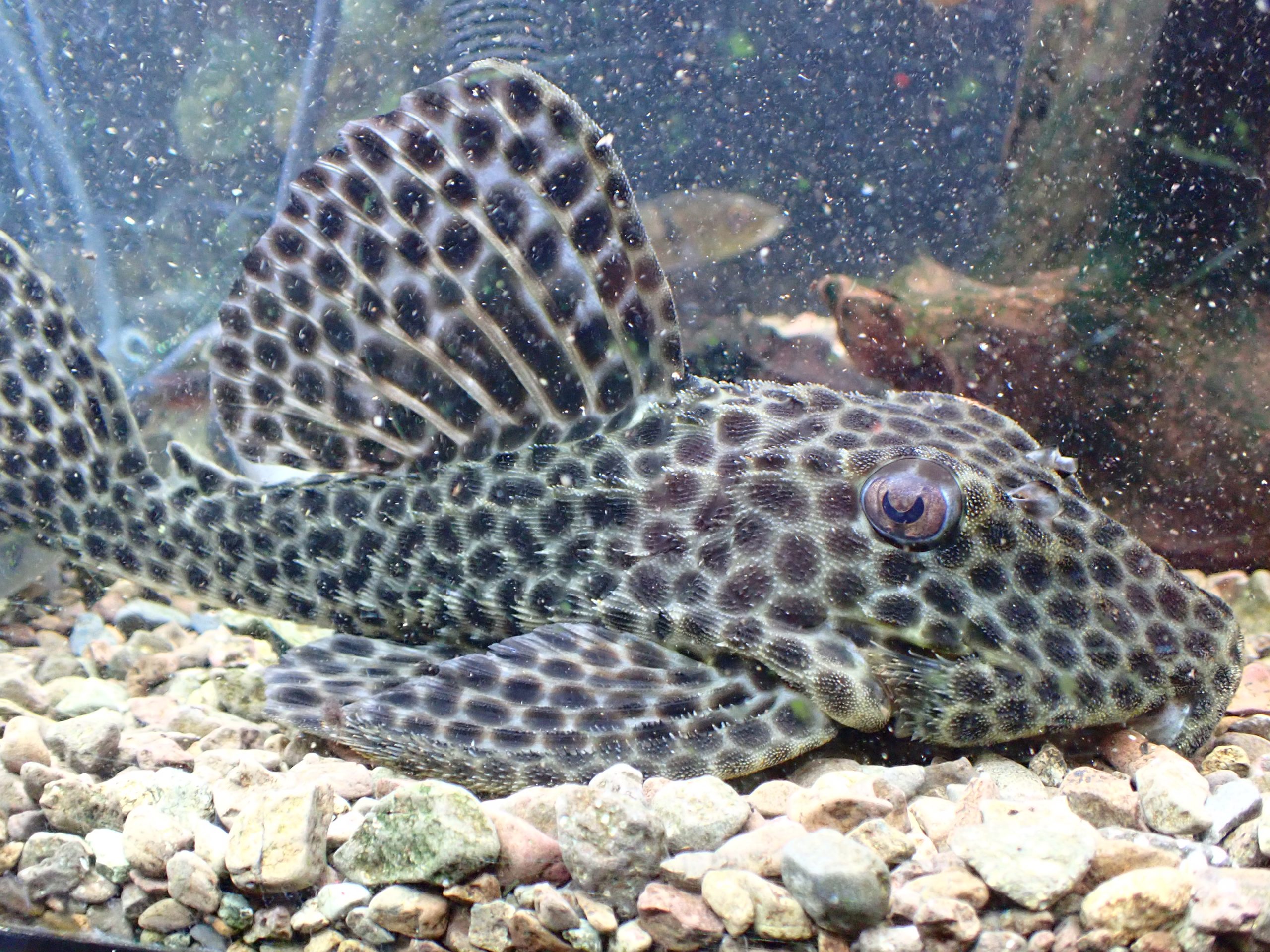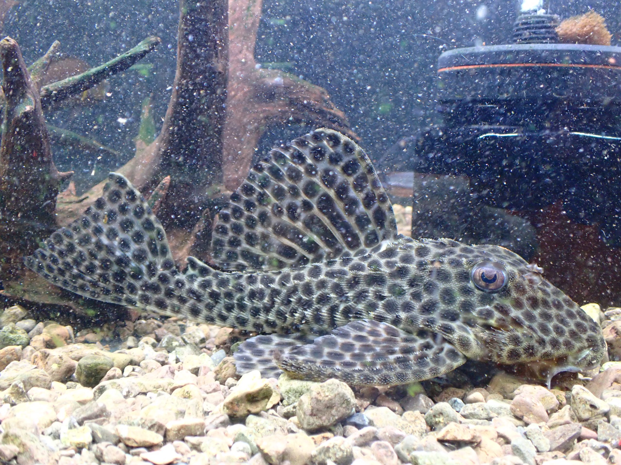 超ビッグサイズなメディアヌス入荷しました!小さいうちは頭でっかちのずんぐり体型がかわいいプレコですが、このサイズになると全身に生える細かい棘も手伝ってかかわいいというより厳つくて迫力があります!7cm位の小さいのでも4万円位しますからね、このサイズでこの値段は超激安な超大特価です!もちろん1匹のみなのでマニアの方はお見逃しなく!撮影する時に水が濁ってしまい見にくい画像でごめんなさい。