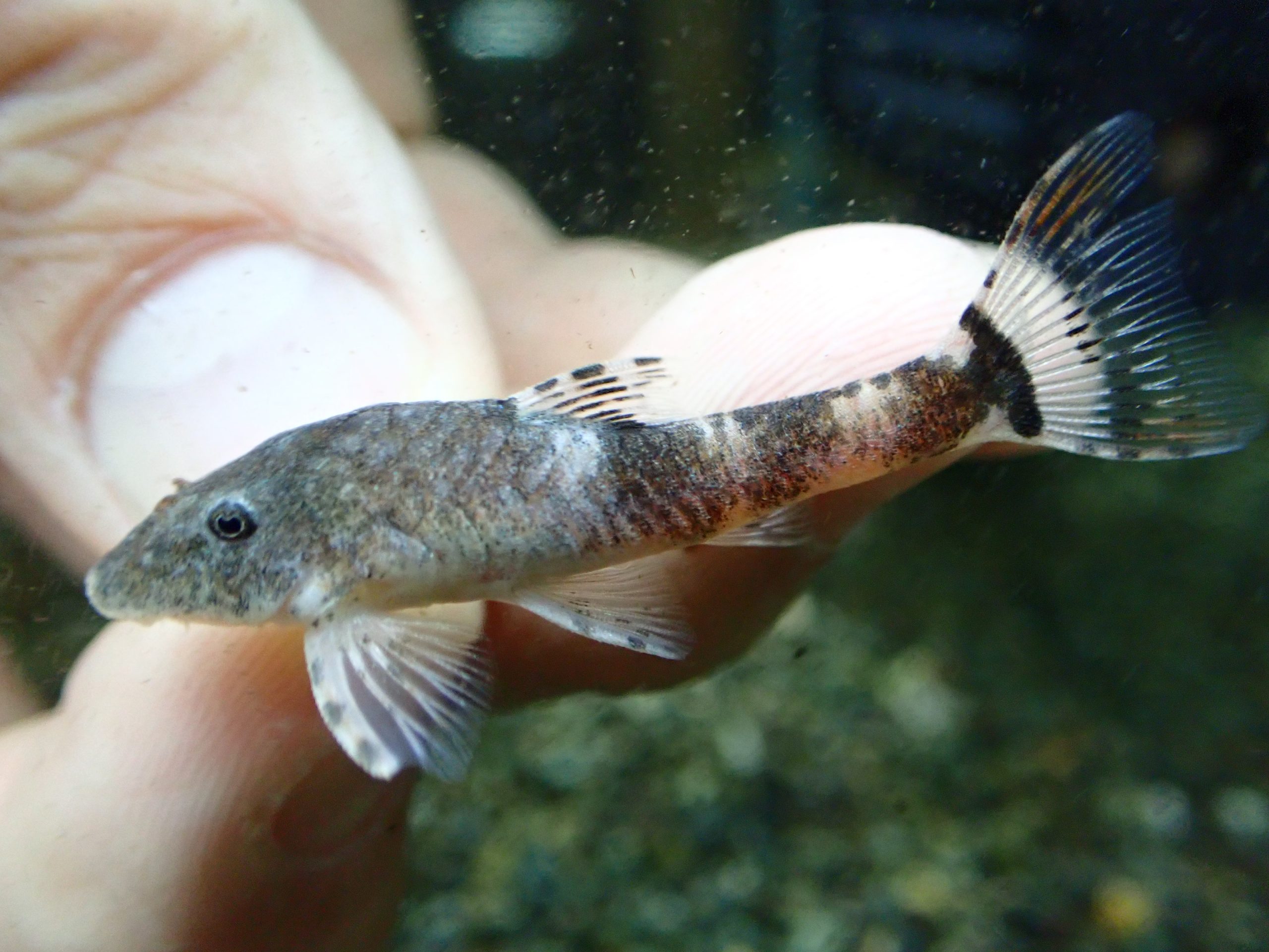 Lampiella gibbosa です。ランピエラ属はギボーサ種の1種のみからなるモノタイプで、ほとんど情報の無いとても珍しい小型のプレコ。頭でっかちで下半身にバンド模様の入るぱっと見アユカケみたいな雰囲気です。派手さはないですがとてもかわいい魚です。入荷は少数です。マニアな方いかがですか??