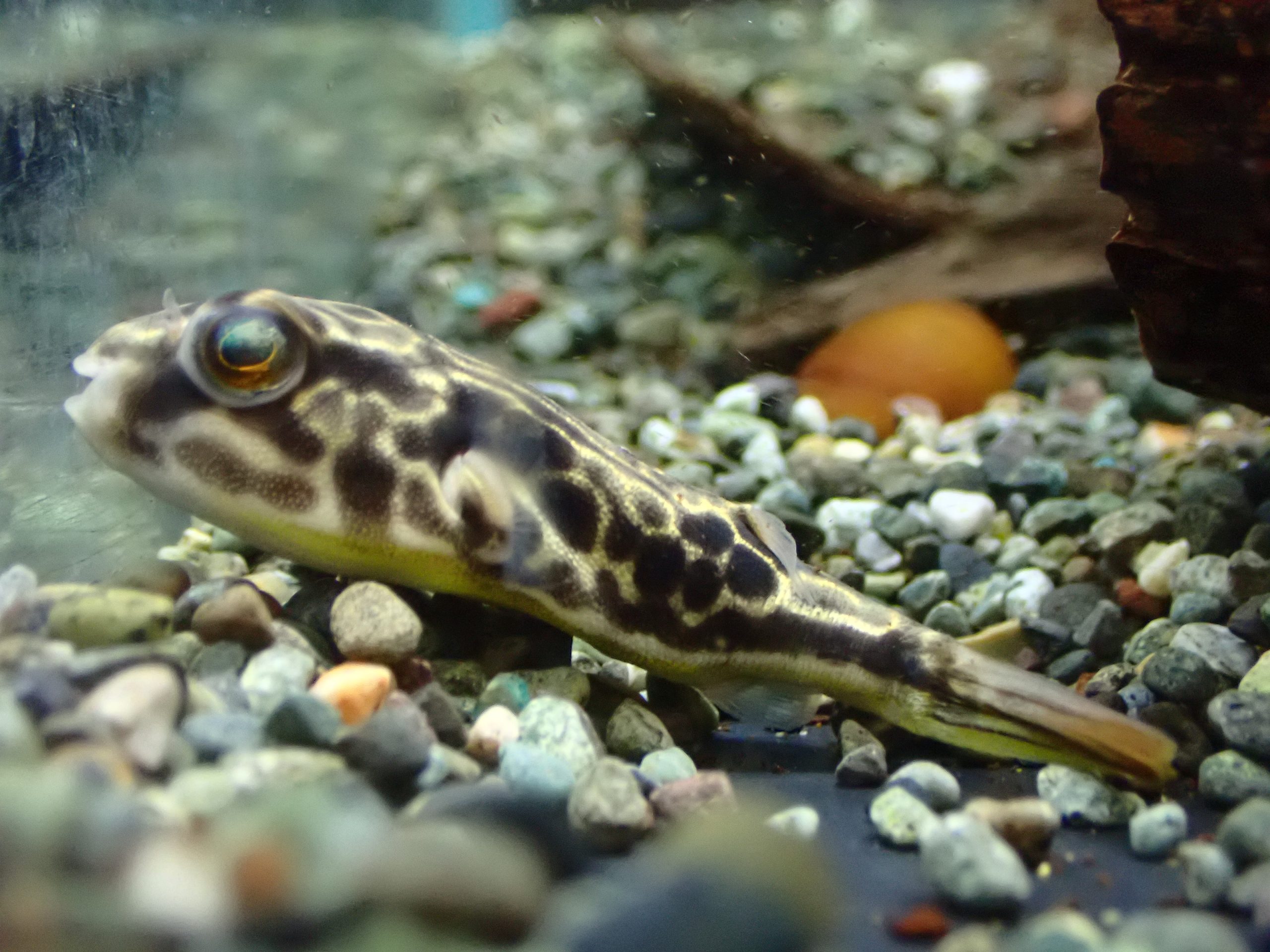 大型になるコンゴ産の淡水フグです。成長につれて尾ビレが伸びてすごくゴージャスになります。デカいのは優雅でかっこいいです!ぜひ大きくしてあげてください!