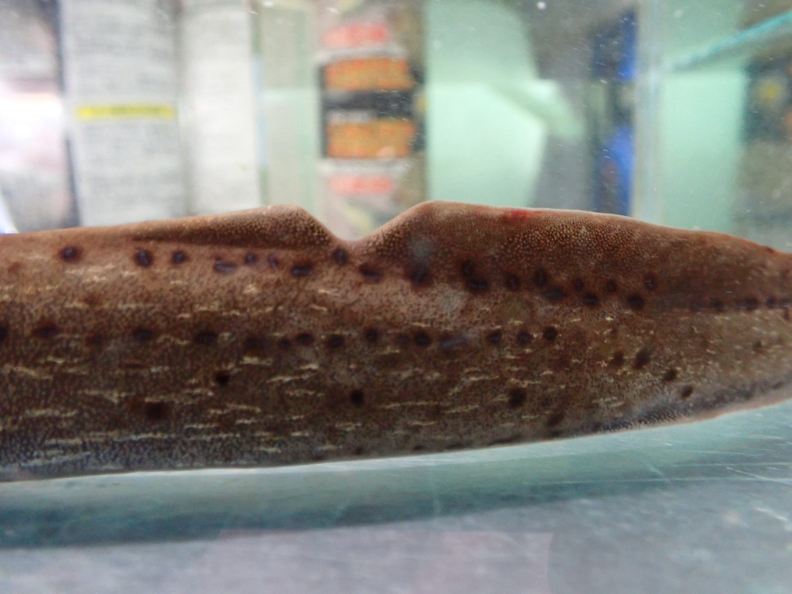 サイズは目測です。黒いスポット模様はありますが金箔模様はほぼ有りません。背中のヒレの部分に欠けがあります。サイレンなんで飼い込んでいればそのうち治るとは思います。ワイルドなので多少の傷はご勘弁を・・・。ヒレ欠け有りのため特価です!