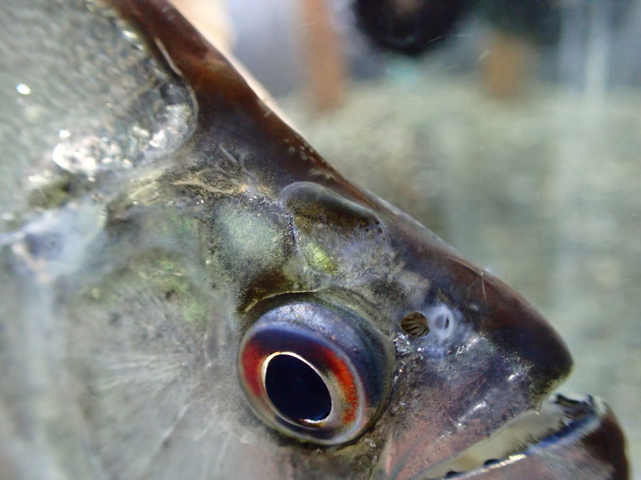 尾ビレの先が再生中ですがすぐに再生します。穴あきではなさそうですが、右目の上あたりにわずかに凹みがあります。個人的にはあまり気にならないとは思いますが、画像でご確認ください。凹みがある分大特価になっていますので気にしないという方はぜひ!