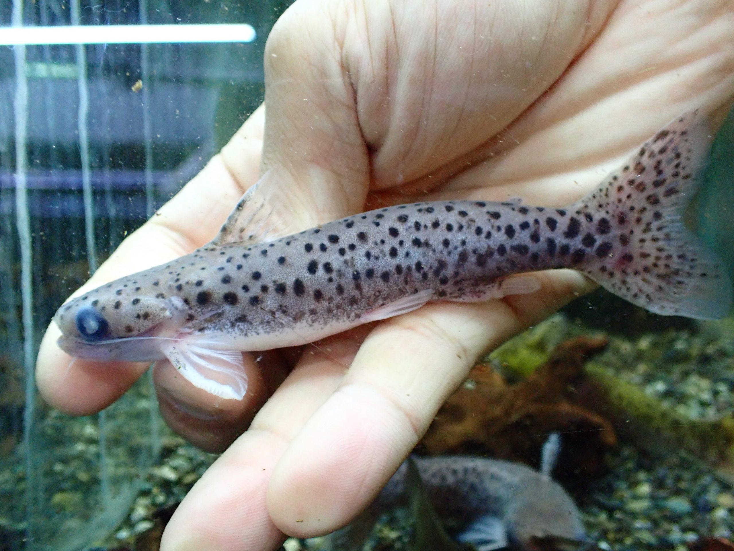 8cmのメスが1匹と12cmのオスが3匹の4匹セットです。4匹とも目が曇ってたりヒレが欠けてたり裂けてたりで何かしらの欠点があります。なので4匹セットで大特価で販売します。難有りですが餌食いも良く状態は問題ありません。メスは1匹だけですが雌雄揃ってるのでぜひ繁殖狙ってみて下さい!1、2、3枚目の画像がオスで4枚目の画像がメスです。