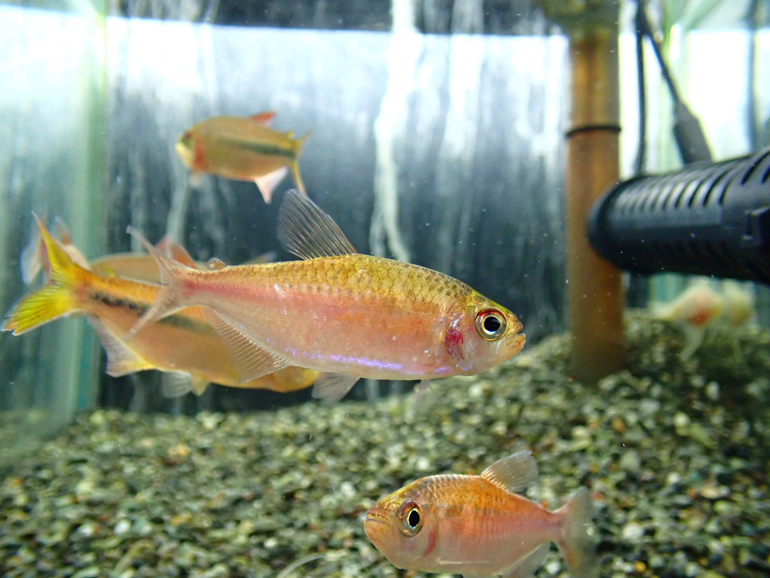 体色はピンク色ですが鱗の光沢は青くてとてもキレイな魚です。まだ来たばかりなので落ち着いてきたらもっと発色すると思いますし。かなりオススメなカラシンです!